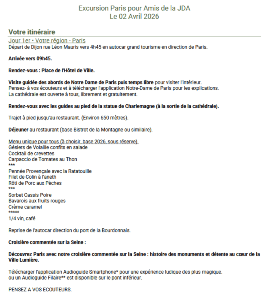 JDA2A a le plaisir de vous convier à une sortie parisienne le 02 avril 2026, dont voici le détail :