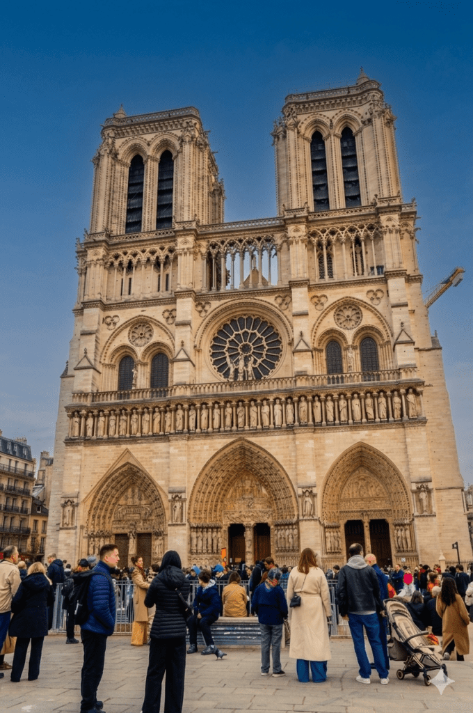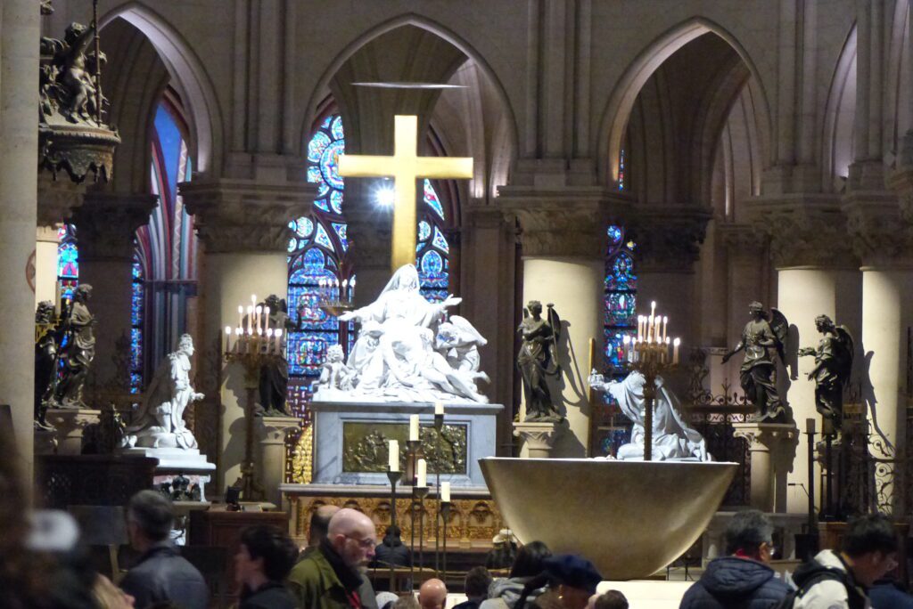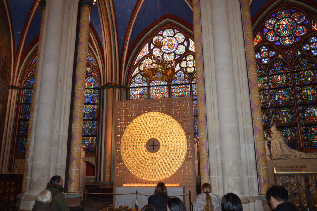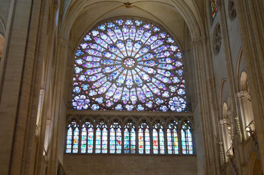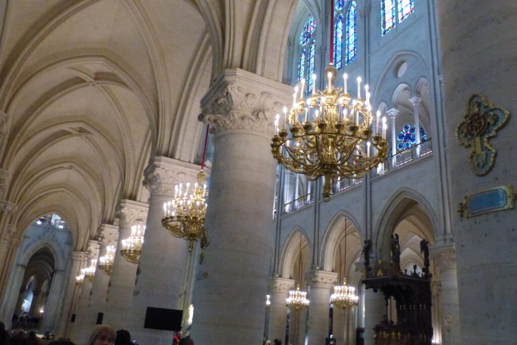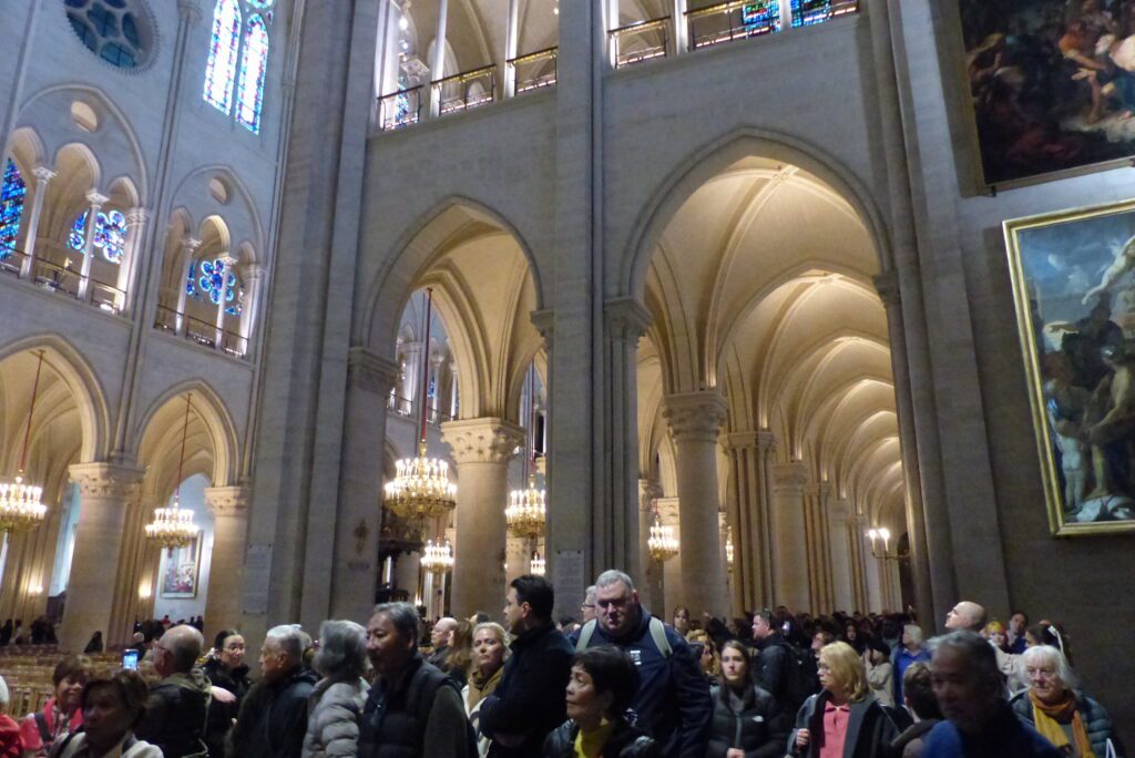C’est donc vers 10h que nous avons retrouvé notre guide pour le première étape de la journée : la visite de la magnifique cathédrale Notre Dame de Paris. Arrivés sur le parvis nous avons été ravis de constater que la file d’attente tant redoutée n’était pas si terrible que cela. A peine 10 minutes de serpentin et nous avons pu entrer dans cet édifice mondialement connu. Dès le franchissement de la porte centrale, la magie a opéré : La magnificence des lieux et la qualité de la restauration après le désastre du 15 avril 2019 dont les images de l’incendie reviendront à l’esprit et marqueront la visite pas à pas.